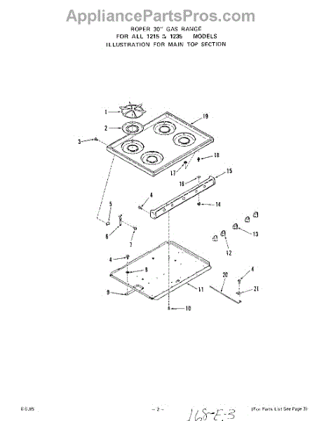 Parts for Roper 1213W1A: 03 - Main Top Parts