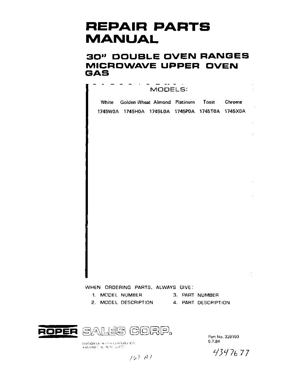 Roper Range Parts
