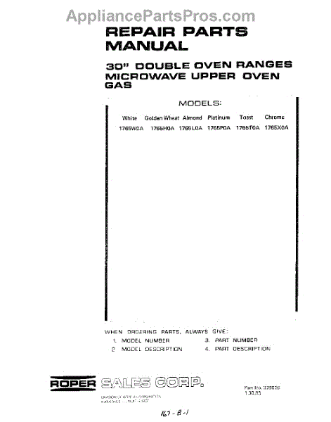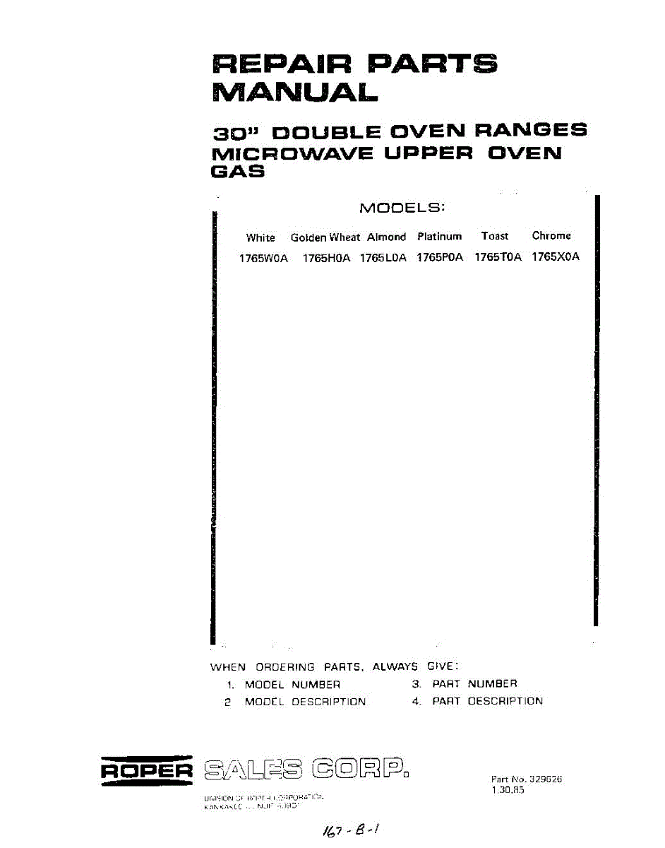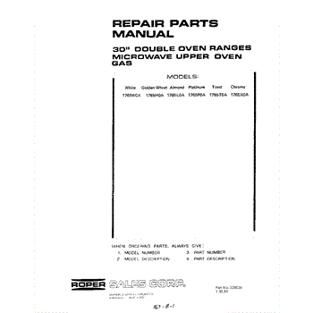 Parts for Roper 1765W0A: 01 - Main Top Parts