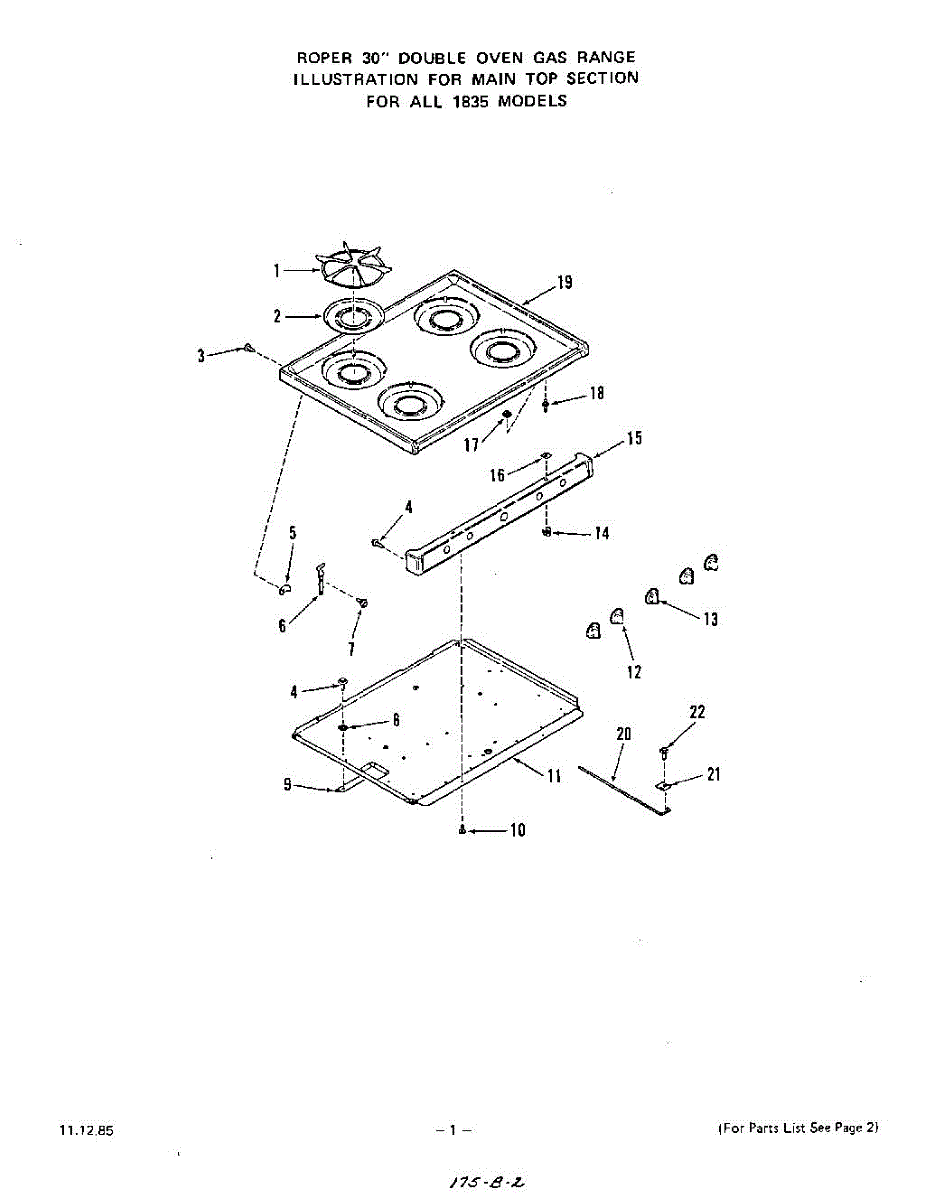 Parts for Roper 1835W1A: 02 - Main Top Parts