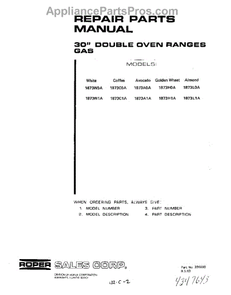 Parts for Roper 1873W0A: 01 - Main Top Parts