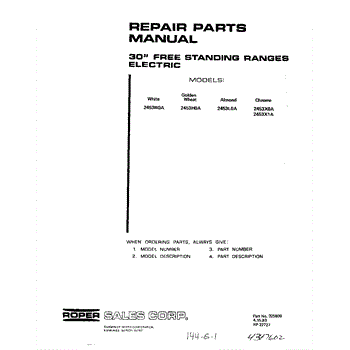 Parts for Roper 2453W0A: 01 - Main Top Parts