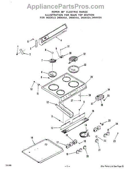 Parts for Roper 2454X1A: 02 - Main Top Parts