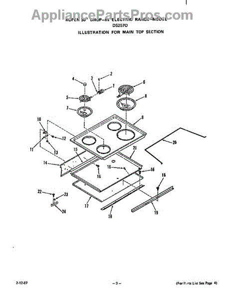 Parts for Roper D5757X0: Main Top Parts