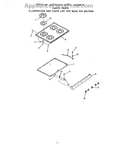 Parts for Roper F6557W0: 03 - Main Top Parts