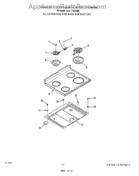 Parts for Roper F9108W0: 03 - Main Top Parts