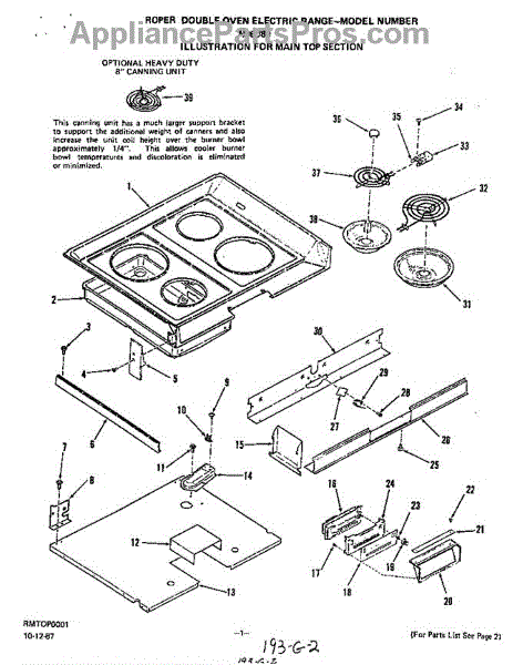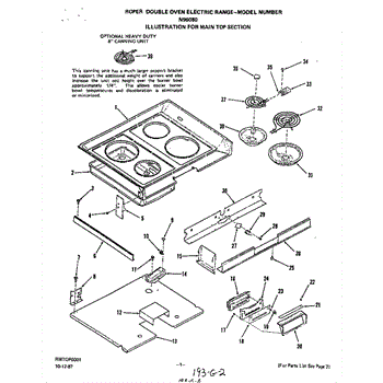 Parts for Roper N9608W0: Main Top Parts