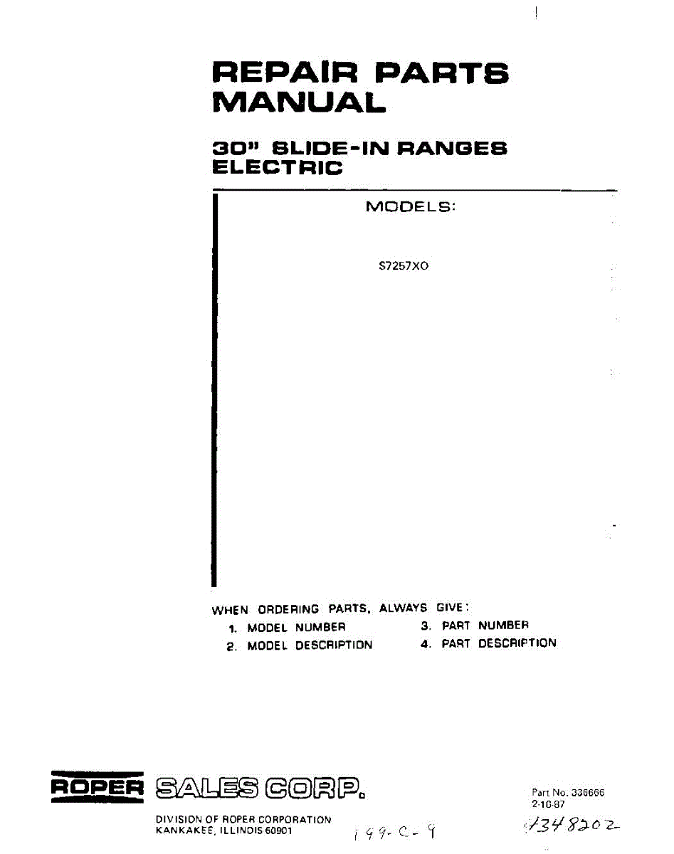 Roper Range Parts