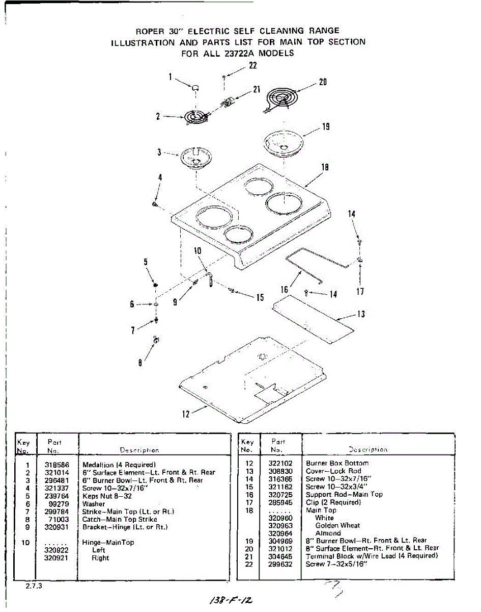 Parts for Whirlpool 2372W2A: 03 - Main Top Parts
