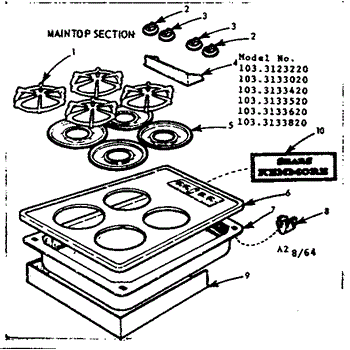 Parts for Kenmore 103.3133520 (1033133520, 103 3133520): Main Top Section Parts