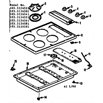 Parts for Kenmore 103.3136581 (1033136581, 103 3136581): Main Top Section Parts