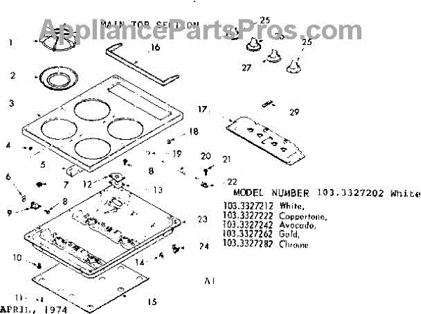 Parts for Kenmore 103.3327222 (1033327222, 103 3327222): Main Top Section Parts
