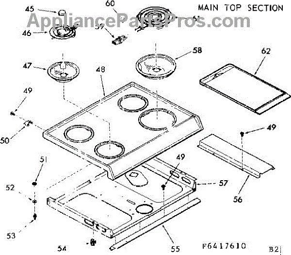 Parts for Kenmore 103.6417610 (1036417610, 103 6417610): Main Top Section Parts