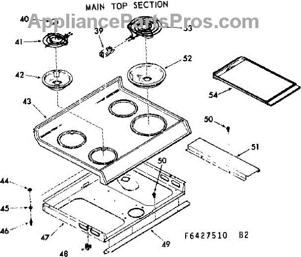 Parts for Kenmore 103.6427540 (1036427540, 103 6427540): Main Top Section Parts