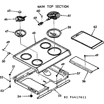 Parts for Kenmore 103.6427611 (1036427611, 103 6427611): Main Top Section Parts