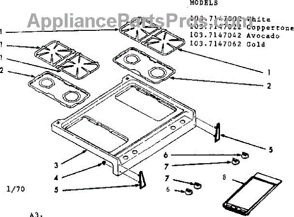 Parts for Kenmore 103.7147042 (1037147042, 103 7147042): Main Top Section Parts