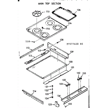 Parts for Kenmore 103.7277420 (1037277420, 103 7277420): Main Top Section Parts