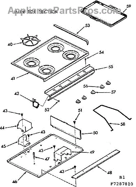 Parts for Kenmore 103.7287811 (1037287811, 103 7287811): Main Top Section Parts