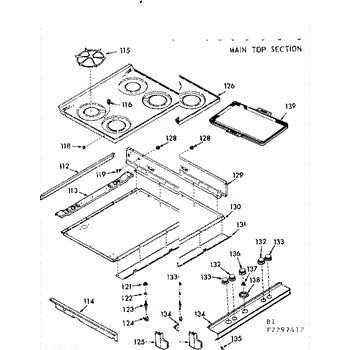 Parts for Kenmore 103.7297412 (1037297412, 103 7297412): Main Top Section Parts