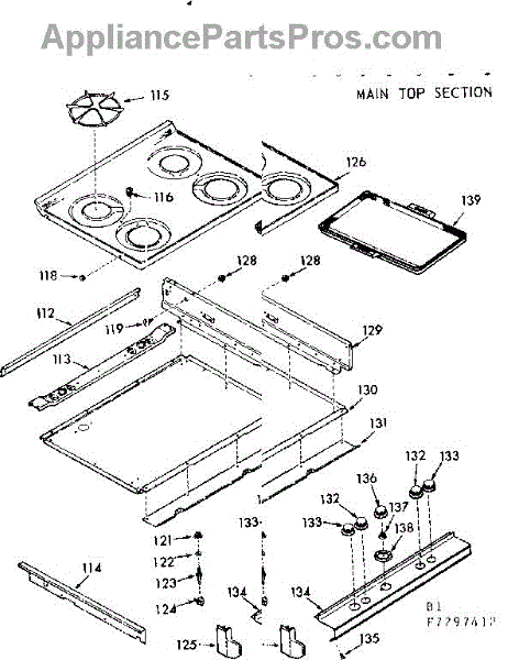 Parts for Kenmore 103.7297462 (1037297462, 103 7297462): Main Top Section Parts