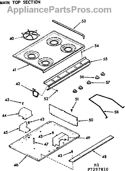 Parts for Kenmore 103.7297810 (1037297810, 103 7297810): Main Top Section Parts