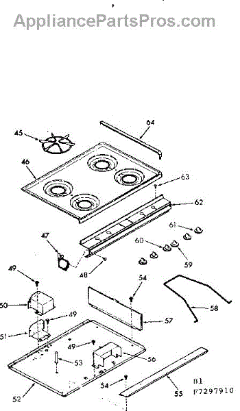 Parts for Kenmore 103.7297910 (1037297910, 103 7297910): Main Top Section Parts