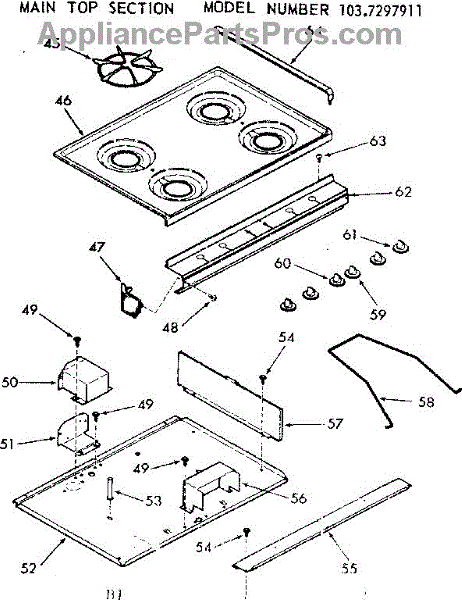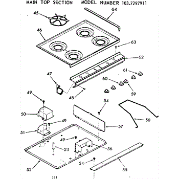 Parts for Kenmore 103.7297911 (1037297911, 103 7297911): Main Top Section Parts