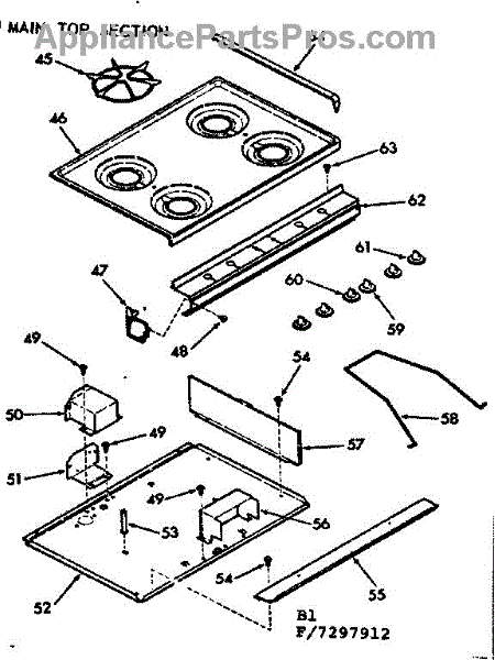 Parts for Kenmore 103.7297912 (1037297912, 103 7297912): Main Top Section Parts