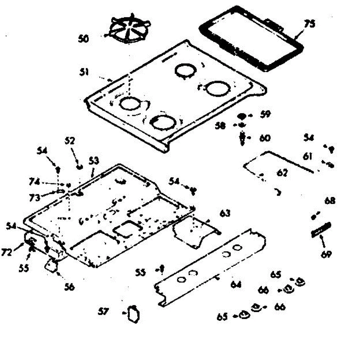 Parts for Kenmore 103.7337261 (1037337261, 103 7337261): Main Top Section Parts