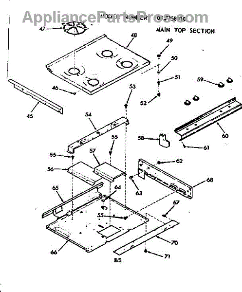 Parts for Kenmore 103.7358010 (1037358010, 103 7358010): Main Top Section Parts