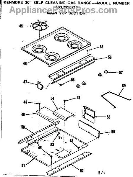 Parts for Kenmore 103.7358210 (1037358210, 103 7358210): Main Top Section Parts