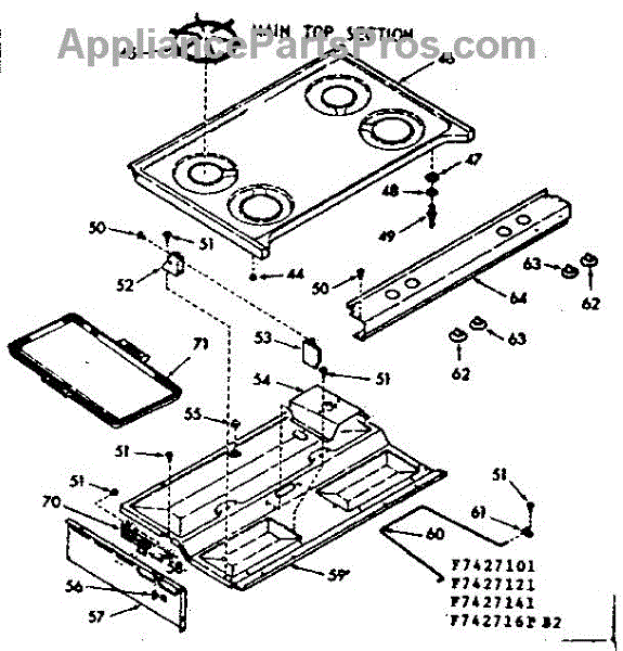 Parts for Kenmore 103.7427161 (1037427161, 103 7427161): Main Top Section Parts