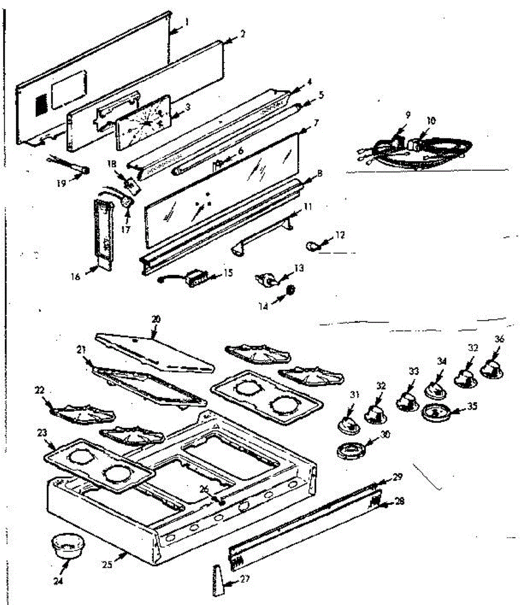 Parts for Kenmore 103.7445804 (1037445804, 103 7445804): Main Top Section Parts
