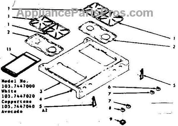 Parts for Kenmore 103.7447000 (1037447000, 103 7447000): Main Top Section Parts