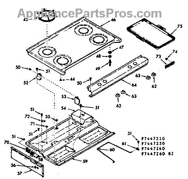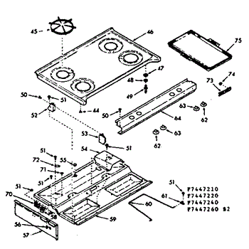 Parts for Kenmore 103.7447210 (1037447210, 103 7447210): Main Top Section Parts