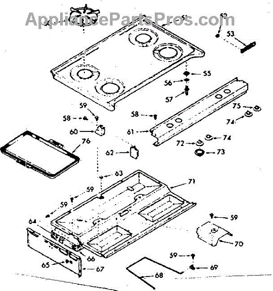 Parts for Kenmore 103.7467261 (1037467261, 103 7467261): Main Top Section Parts