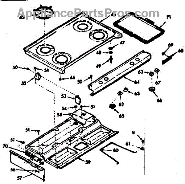 Parts for Kenmore 103.7477260 (1037477260, 103 7477260): Main Top Section Parts