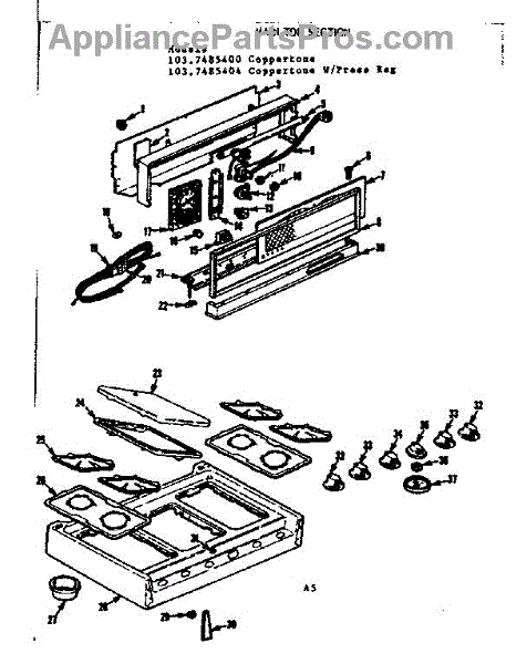 Parts for Kenmore 103.7485400 (1037485400, 103 7485400): Main Top Section Parts