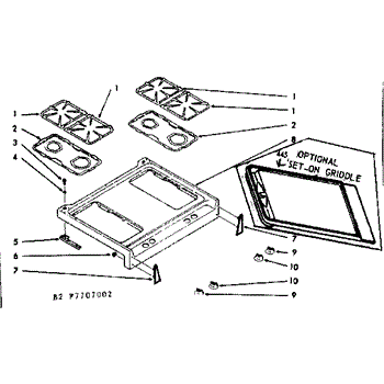 Parts for Kenmore 103.7707022 (1037707022, 103 7707022): Main Top Section And Set-On Griddle Parts