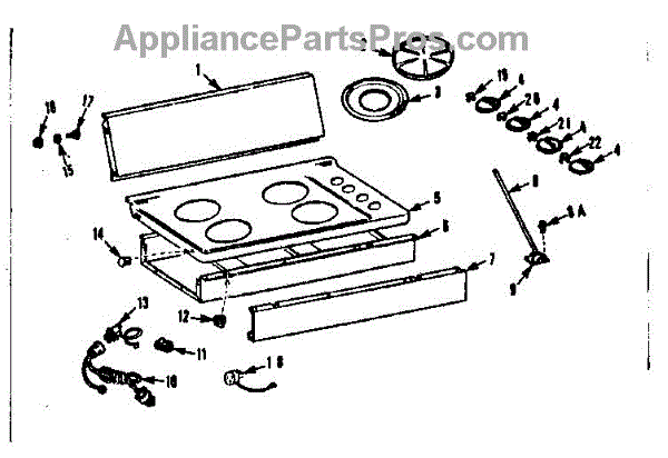 Parts for Kenmore 103.7725404 (1037725404, 103 7725404): Main Top Section Parts