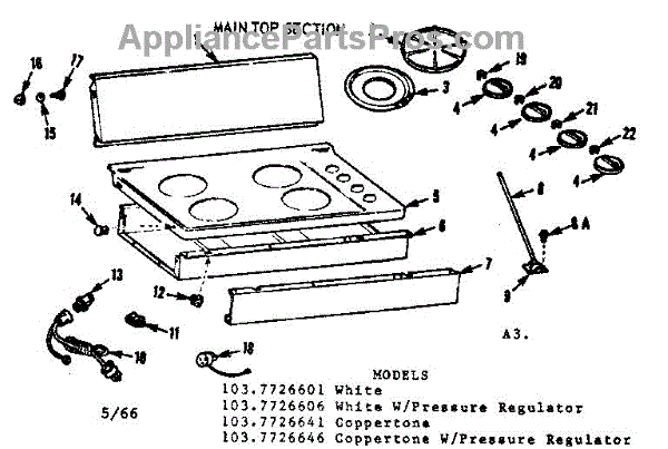 Parts for Kenmore 103.7726606 (1037726606, 103 7726606): Main Top Section Parts