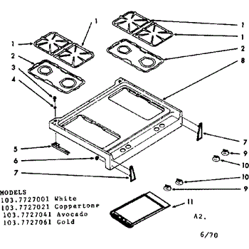 Parts for Kenmore 103.7727041 (1037727041, 103 7727041): Main Top Section Parts