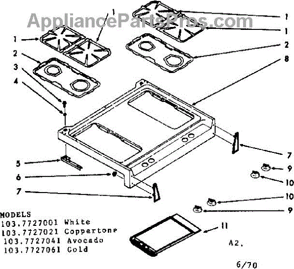 Parts for Kenmore 103.7727061 (1037727061, 103 7727061): Main Top Section Parts