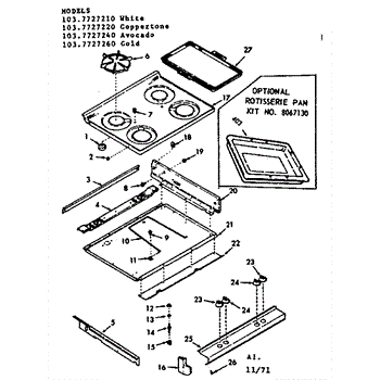 Parts for Kenmore 103.7727240 (1037727240, 103 7727240): Main Top Section Parts