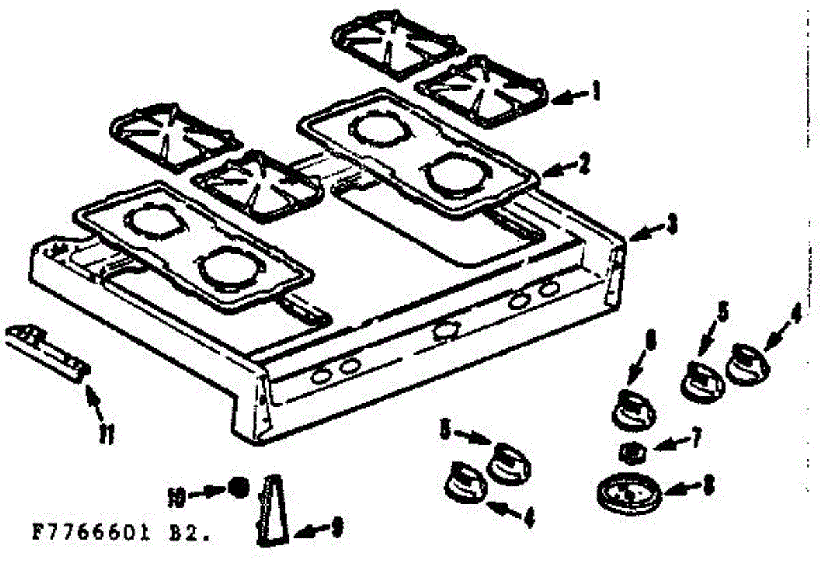 Parts for Kenmore 103.7766646 (1037766646, 103 7766646): Main Top Section Parts