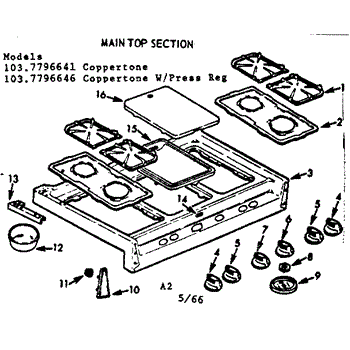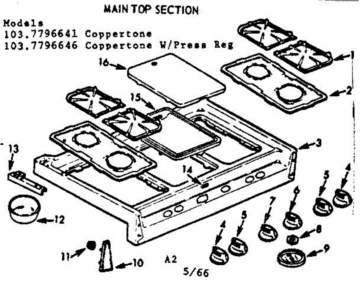 Parts for Kenmore 103.7796641 (1037796641, 103 7796641): Main Top Section Parts