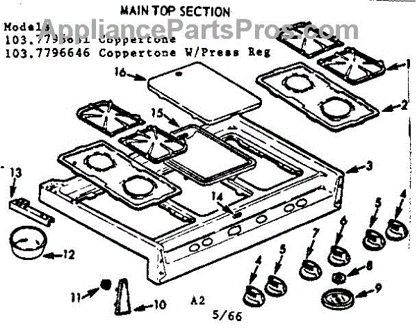 Parts for Kenmore 103.7796646 (1037796646, 103 7796646): Main Top Section Parts