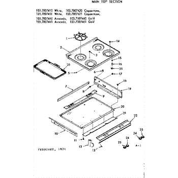 Parts for Kenmore 103.7807441 (1037807441, 103 7807441): Main Top Section Parts