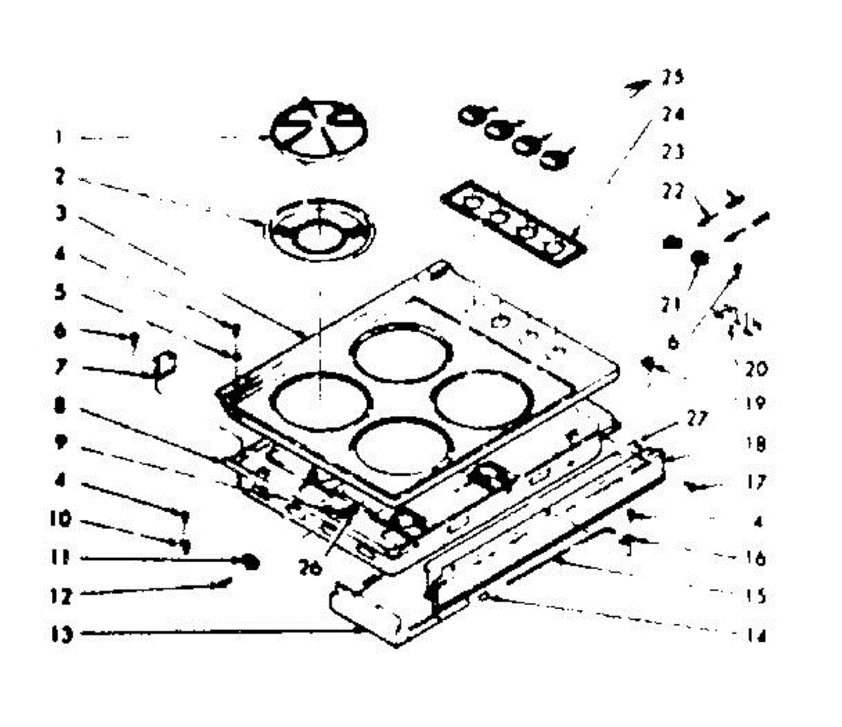 Parts for Kenmore 103.7846960 (1037846960, 103 7846960): Main Top Section Parts