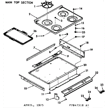 Parts for Kenmore 103.7847520 (1037847520, 103 7847520): Main Top Section Parts